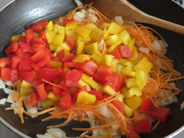 добавить морковь и подержать на огне ещё 2 минуты.