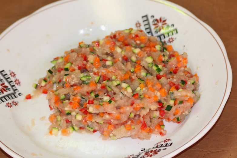 10. Смешать овощи с фаршем.