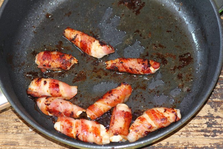 Обжарить рулетики на оливковом масле до готовности.