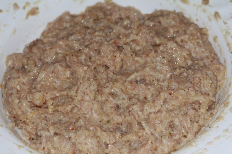 Фарш вымесить и убрать в морозильник на 10 минут.