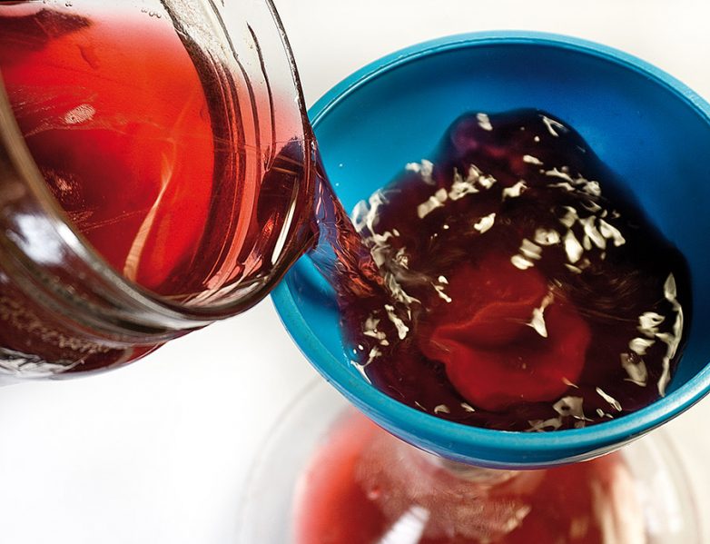 По прошествии первых двух-трех недель можно провести грубую фильтрацию наливки, процедив её через сито, чтобы удалить ошметки лимонной цедры, если она использовалась. А спустя еще две-три недели снять с осадка, небольшой слой которого по мере осветления наливки образуется в любом случае. Еще через две-три недели нужно будет аккуратно перелить наливку, не взбаламучивая тонкий налет у донышка посуды через плотную хлопчатобумажную ткань или ватные диски, уложенные в воронку.