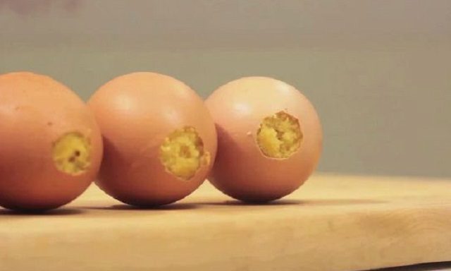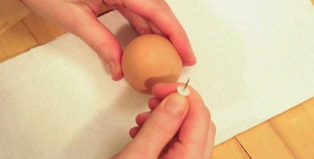 Сделайте отверстия в верхней части яиц таким образом.