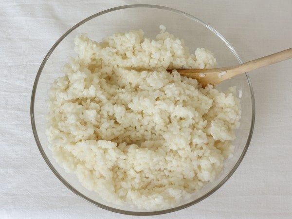 когда рис сварился, добавить сливочное масло и натёртый пармезан, перемешать, дать полностью остыть.