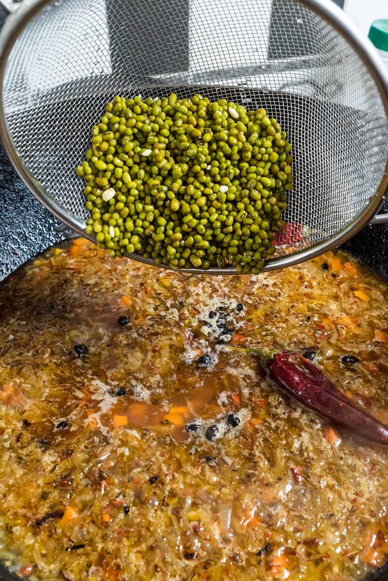 Замочите маш за несколько часов до начала приготовления. Переберите, удалив темные и твердые бобы.