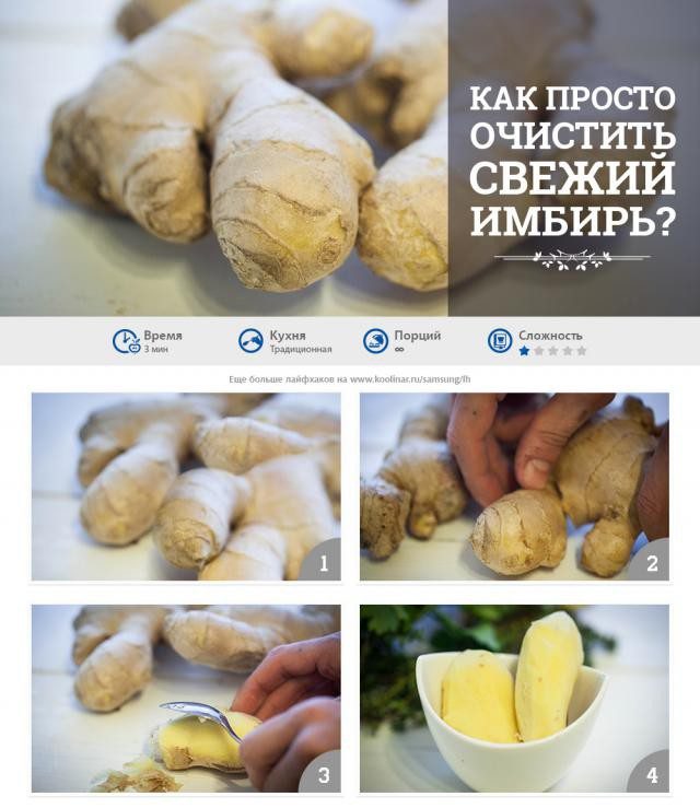 Очистить корень имбиря без лишних потерь легко! Вам потребуется: Возьмите в одну руку имбирь, в другую — столовую ложку, ухватив ее за основание "«ручки»". Держа ложку вогнутой стороной вниз, соскаблите кожуру с корня имбиря движениями от себя. Таким образом очистите весь имбирь.