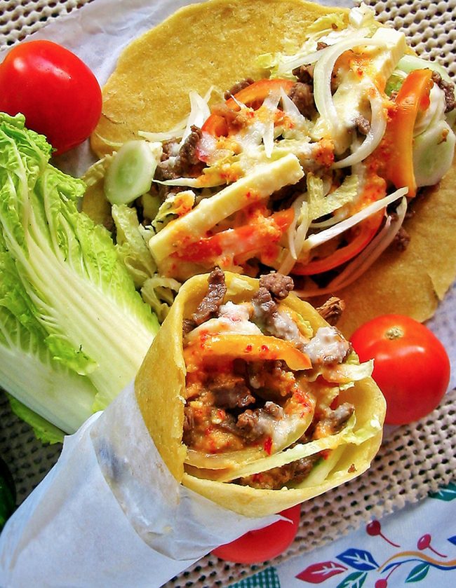 Это блюдо готовят из рубленой говядины, риса, черных бобов и сыра.