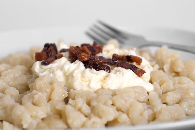 Это маленькие картофельные клецки, заправленные мягким сыром и беконом.