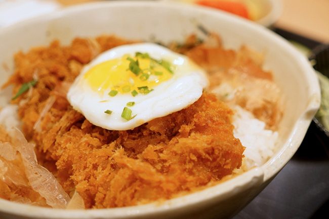 Это тонкая свиная отбивная с яйцом, которую кладут сверху в чашу с рисом.