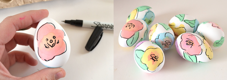А некоторые пасхальные яйца можно украшать с помощью пищевых красок и маркера