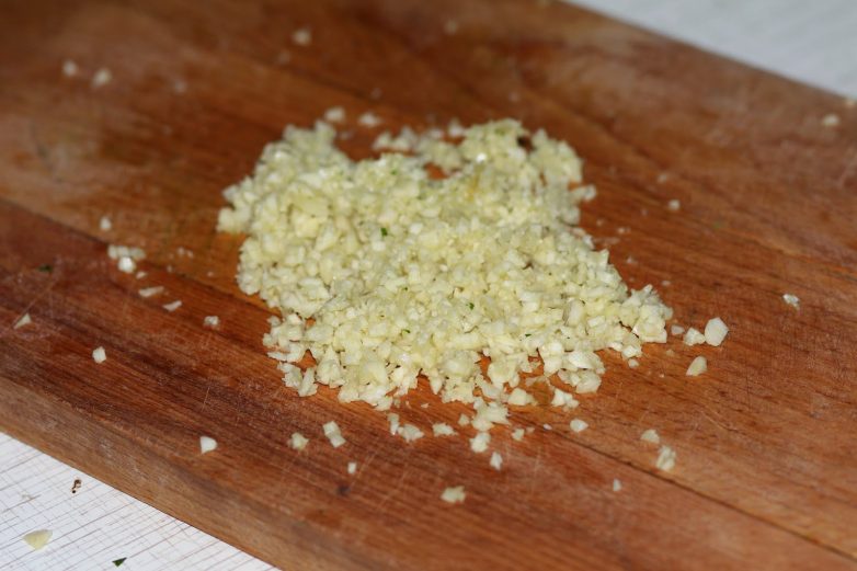 К фаршу добавить чеснок, соль, перец, цедру лимона, петрушку и все хорошо вымесить.