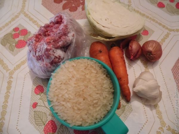 Начнем приготовление блюда с того, что подготовим продукты. Рис используем пареный, он содержит меньше клейковины, поэтому и не слипается при варке. Фарш берем по своему усмотрению.