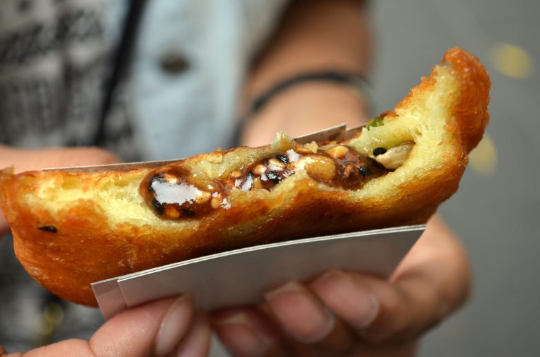 Хотток – сладкие жареные блинчики со сладкой начинкой из коричневого сахара, мёда, арахиса, семян кунжута и корицы (Кория)