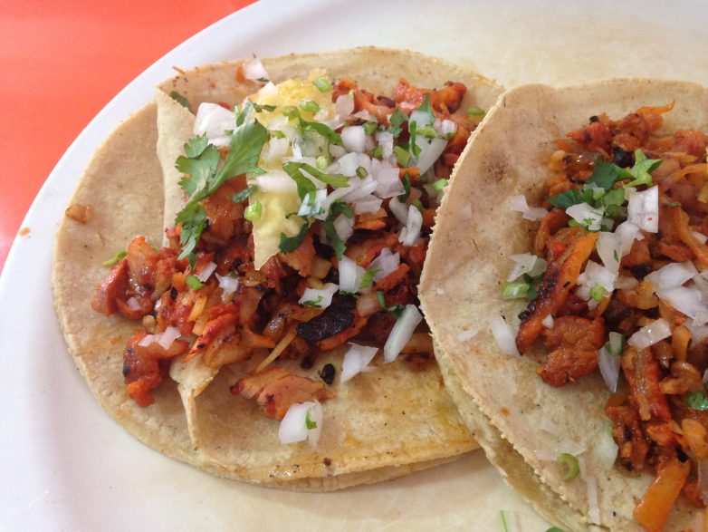 Тако аль Пастор – тако из тонко нарезанной жареной свинины, предварительно маринованной с аннато (Мексика)