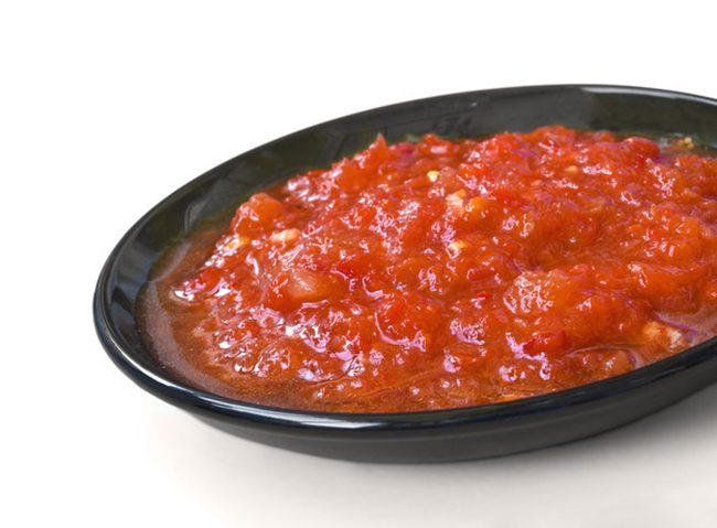 Это традиционный грузинский томатный соус, в который добавляют кинзу, хмели-сунели и чеснок.