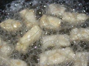 Много сразу закидывать нельзя. При жарке, нужно учитывать, что тесто увеличится как минимум вдвое.