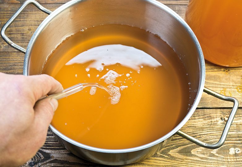 Свежевыжатый сок, между тем, перельем в подходящую по объему емкость для последующего брожения сусла, обращая внимание, что допускается емкость стальная, стеклянная или эмалированная (без дефектов и ржавчины). В исключительных случаях — из пищевого пластика.