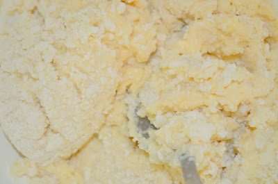 влить жидкие ингредиенты в муку с картофелем, все перемешать