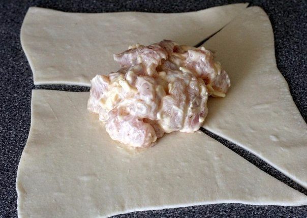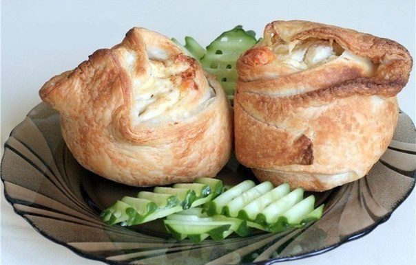 Симпатичные миниатюрные слоеные пирожки с курицей и сыром. Просто и вкусно!