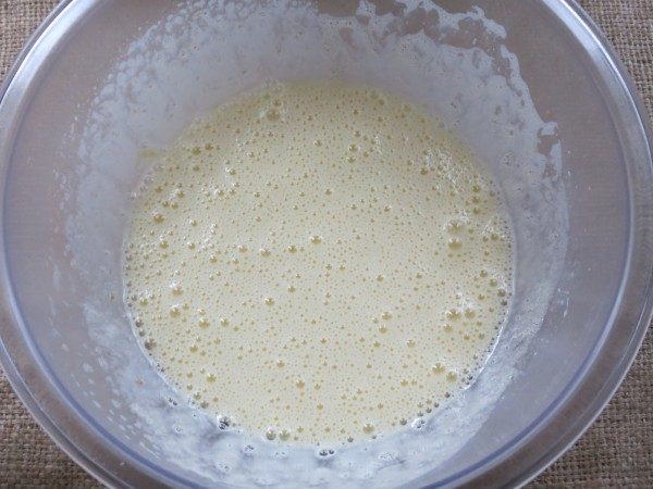 подогреть молоко / не дать ему закипеть / и постоянно перемешивая, добавить взбитую массу.