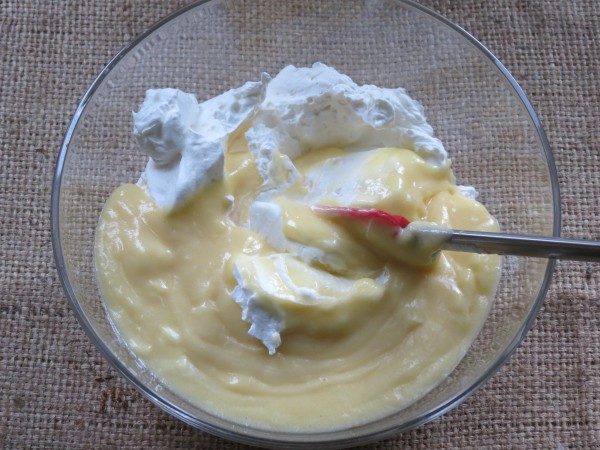 аккуратно смешать взбитые сливки с заварным кремом.