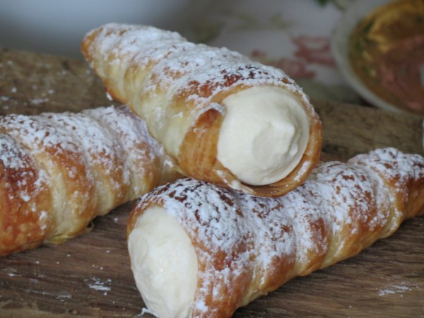 Трубочки из слоеного теста с кремом