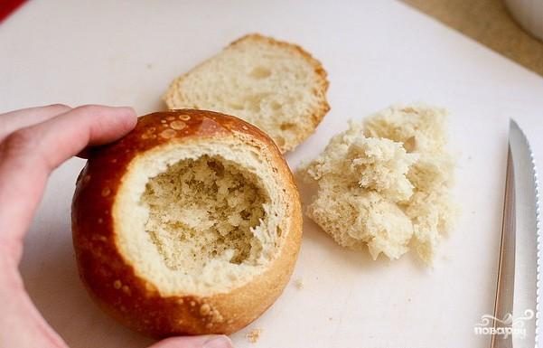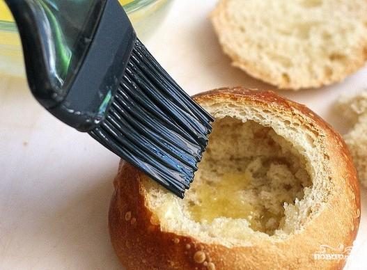 Для начала в магазине нужно приобрести 6 круглых булочек — горшочков. Перед тем как начинать приготовление, разогрейте духовку до 175 градусов и заготовьте начинки для яичниц. Далее вырежьте отверстие в булочках и выньте из них мякоть.