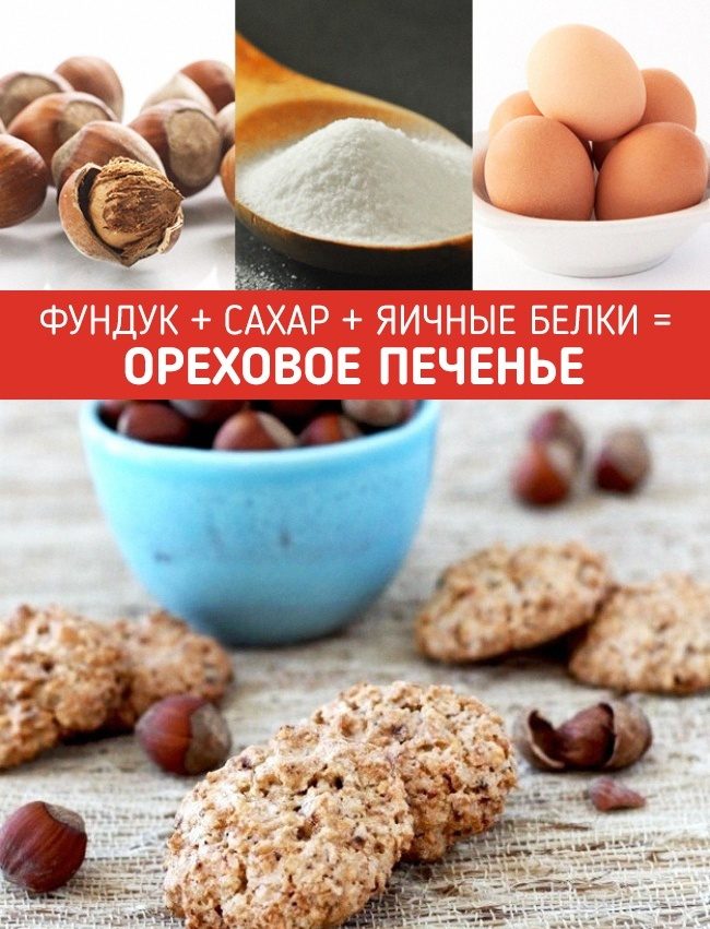 Отделите 1 яичный белок и взбейте с щепоткой соли в хорошую устойчивую пену, аккуратно вмешайте сахар и орехи. Выложите ложкой на противень и выпекайте около 30 минут.