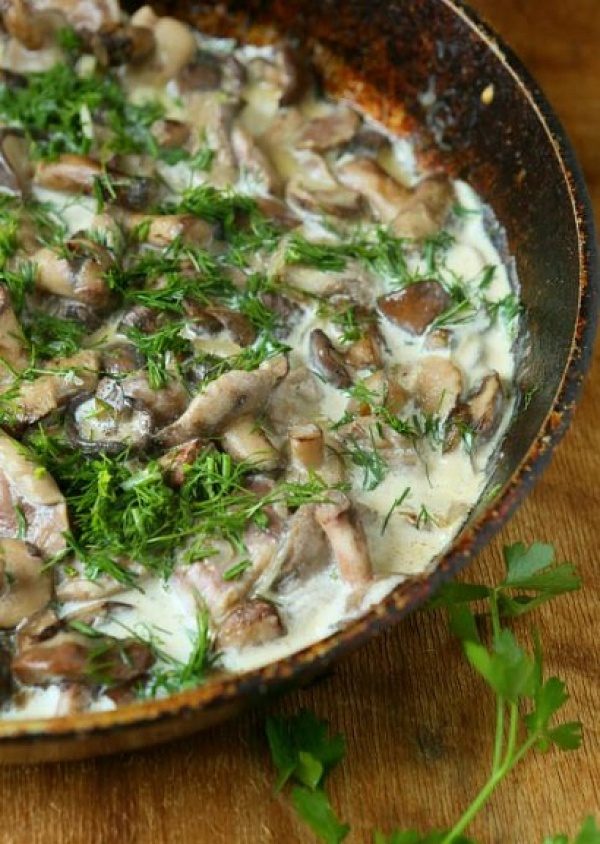 Жареные грибы с пряностями в сметане