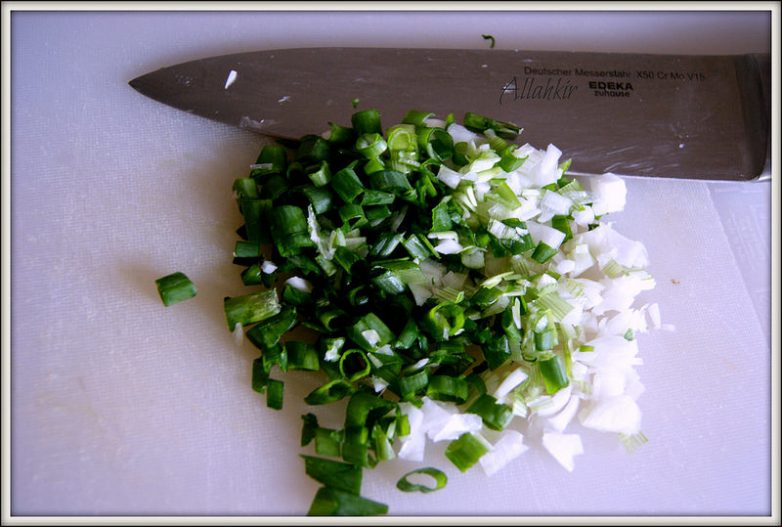 Мелко измельченый зеленый лук с чесноком