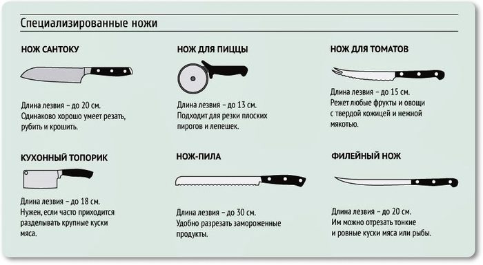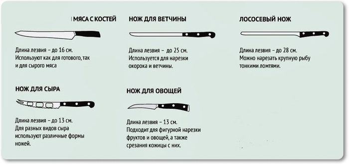 Ножей существует множество — для хлеба, пиццы, филе, рыбы, овощей… Думаю, не стоит много говорить, ведь намного проще один раз увидеть и запомнить, ведь так?
