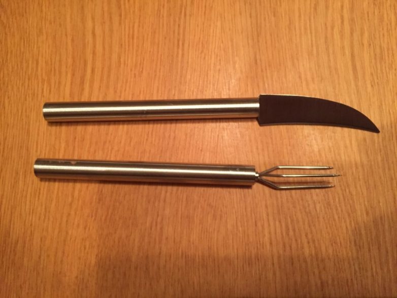 В этой паре важен не столько нож, сколько вилка. Обычная, четырехзубая вилка раскалывает картофелину пополам, что неудобно. Вилка для чистки картофеля — трехзубая, тонкая, зубья расположены не на одной линии, а треугольником — картофелина не разваливается. А нож прекрасно снимает кожицу и убирает глазки и дефекты. Рекомендую)