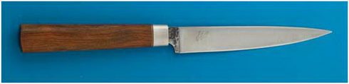 Это нож среднего размера – меньше, чем шеф и длиннее, чем нож для чистки овощей. Длина лезвия – 14-16 см, полотно – узкое, часто – чуть гибкое, но не так как у филейника. Обух ножа – на одной линии с верхней частью ручки, лезвие – чуть выступает за ручку. Название происходит от слова «коренья» — для чистки и резки корнеплодов. В чем прелесть коренчатого ножа? Это, несомненно одна из вершин универсальности. Этим ножом можно очищать от кожуры, выбирать дефекты корнеплодов (типа глазков у картошки), разрезать, резать мелко, при умении – филировать рыбу, совершать большинство обвалочных операций. Кроме того, форма этого ножа позволяет работать несколькими хватами – обычным, когда рука облегает рукоятку,