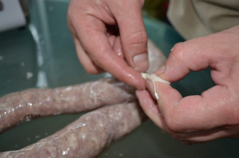 Потом можно перевертеть кишку и сделать таким образом маленькие колбаски.