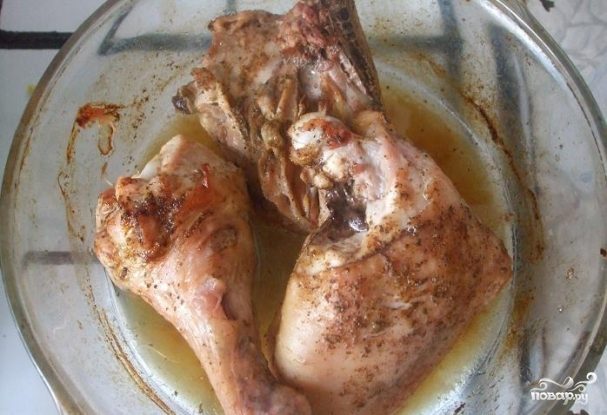Даем курице пропитаться приправами как минимум 30 минут, но для лучшего вкуса лучше, конечно, оставить ее в прохладном месте на пару часиков.