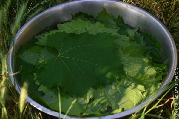 Листья для маринования нужны только молодые. Лучше всего для маринования использовать виноград белых сортов, но если такого нет, то можно использовать листья черного винограда.