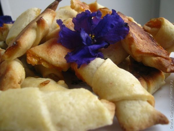 На широкую часть каждого сектора положила немного повидла (буквально капельку, чтобы при выпекании оно не потекло и не пригорело).