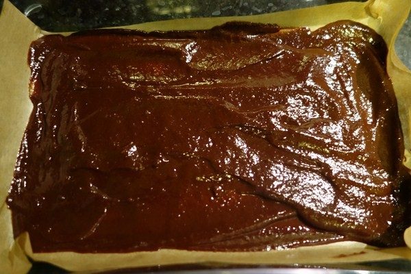 4.Все перемешиваю и выливаю 1/3 в форму с пергаментом.