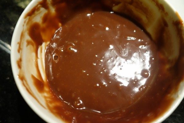 1.Растапливаю темный шоколад в микроволновке 1,5 мин.при мощности 1000 Ватт.