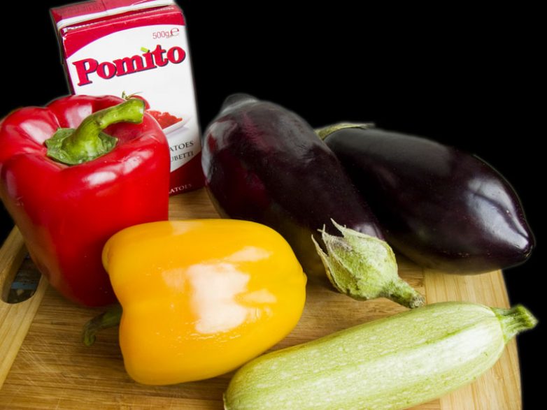 Здесь на фото все действующие лица, кроме помидоров и зелени. Учитывая, что имеющиеся сейчас в продаже помидоры являются помидорами только номинально, зимой я пользуюсь помидорной пассатой греко-итальянского происхождения. Масло здесь я тоже не показал — обычно смешиваю на сковороде топленое масло с подсолнечным.
