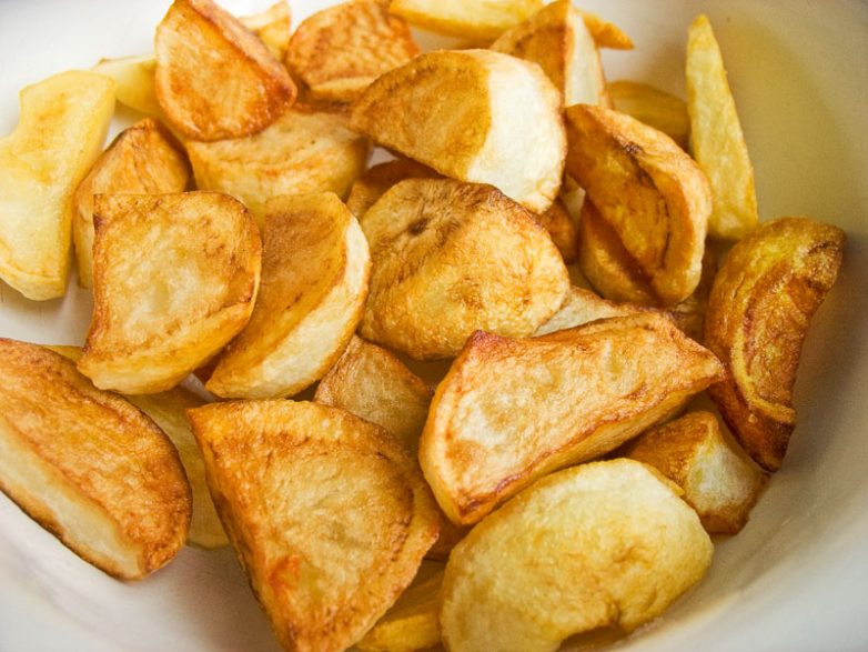 Первое отличие в том, что я взял ещё и картошку — и не просто взял, а предварительно обжарил её до приятного глазу и душе румянца.