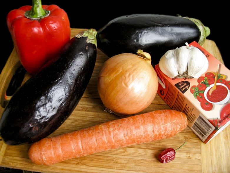 Итак, покупаем пару толстеньких баклажанов, пару фешенебельных перцев, хорошо бы разноцветных для ублажения эстетического чувства,