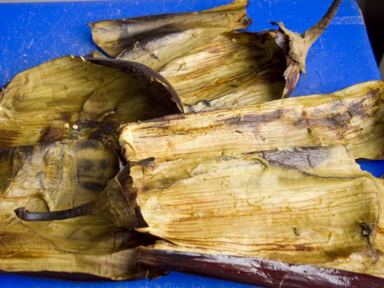 Во всех случаях кожу баклажанов нужно проколоть для выпуска пара, если не хотите получить катастрофу местного масштаба. Запекаемые баклажаны не всегда, но время от времени взрываются, покрывая своими внутренностями духовку или пространство вокруг.