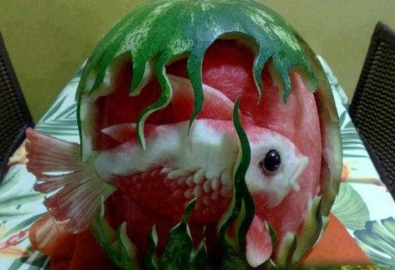 На сегодняшний день арбуз является не только вкусной ягодой, но и основой для полета фантазий мастеров по карвингу (искусство художественной резки по овощам и фруктам). Вот некоторые работы их необыкновенного творчества.