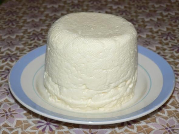 15. Через 5 часов достаем слегка подпрессованный сыр: