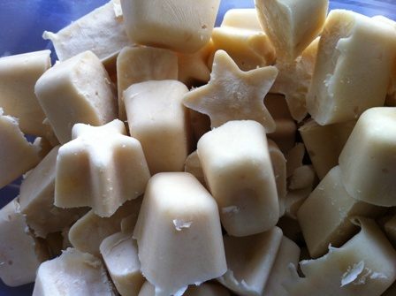 Подготовьте чистые формочки для заморозки и разложите по ним творожную массу. Если получается неаккуратно, как у меня, ничего страшного, просто удалите лишний творог бумажной салфеткой после того, как все формы будут наполнены.