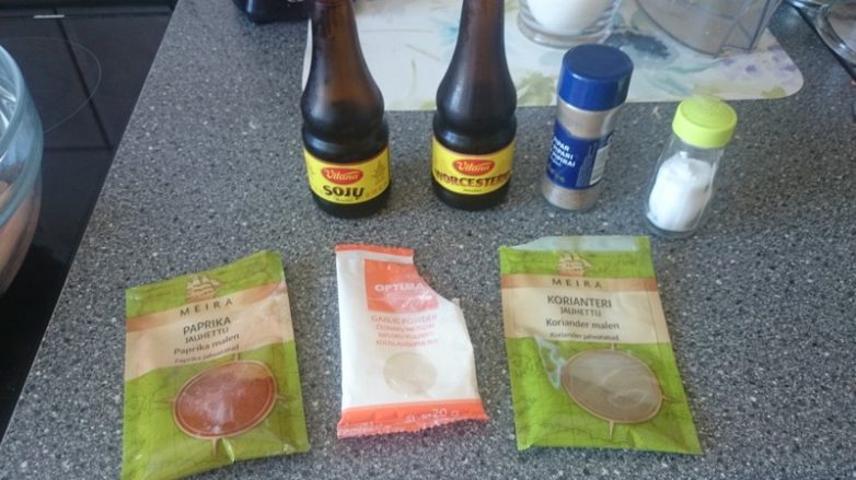 Главные приправы, это соус соевый и соус ворчестер. Советую соевый соус брать дешевый, жидкий а не густой и дорогой.