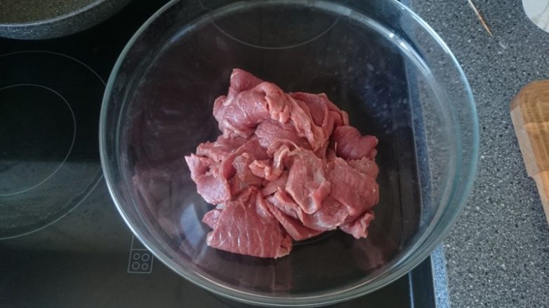 Если куски мясо получились слишком широкие, можно разрезать их вдоль, что бы ширина была примерно 2 — 3 см.