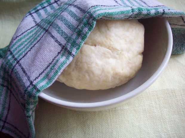 Вымешиваем и оставляем расстояться минут на 20, покрыв тесто влажным полотенцем.