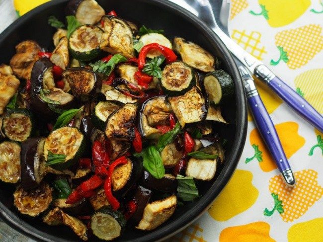 Теплый салат из кабачков и баклажанов
