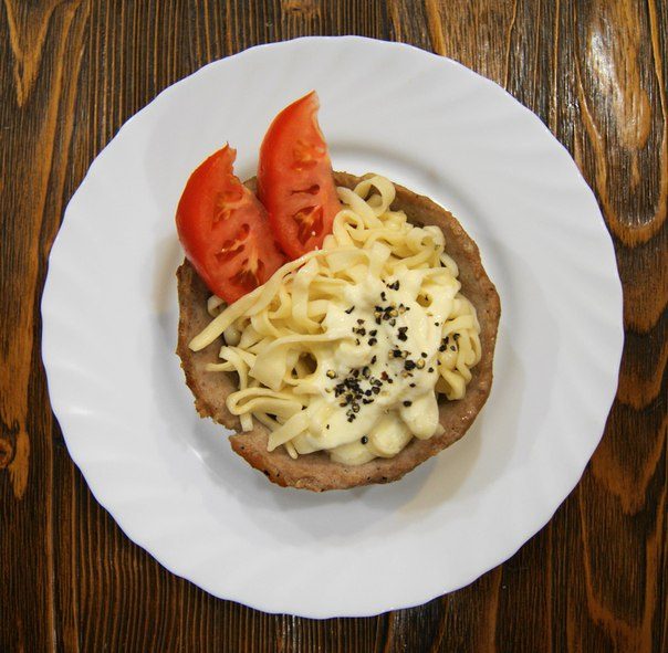 Домашняя лапша под сырно-сметанным соусом